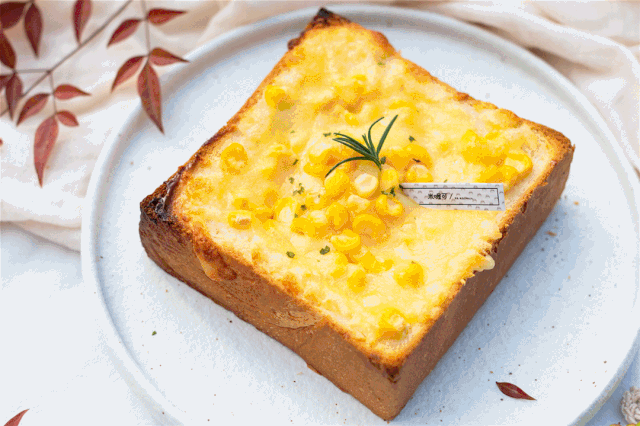 吐司的边缘特别酥脆,一口下去就听到“咔呲咔呲”的声音了。芝士又格外带着韧劲,芝士奶酪搭配玉米,简直就是重度诱惑!