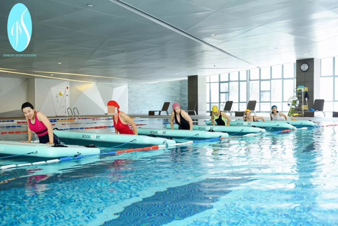 目前除了Boga桨板团课(包含桨板瑜伽、桨板HIIT、桨板全适能、桨板尊巴等)以外,还有普拉提床、芳疗瑜伽、MFI美人鱼课程、肩颈脊柱放松课程、孕产课程等等。