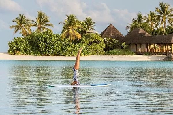 简单来说,就是把桨板代替瑜伽垫放在水面上练习瑜伽体式。