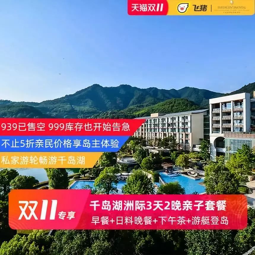 这个酒店不用多介绍了,2晚939被秒空是很正常的。虽然939的被秒空了,但是不用遗憾。因为如果是我,我会买1299元的含早套餐,去过千岛湖洲际的人都知道,他家酒店非常私密,你想出去找个早餐店?估计先得开车7KM吧。现在火车通了,从千岛湖站到酒店也有摆渡巴士,你还愿意开车去千岛湖?剁手口令: