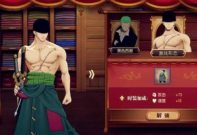 累计消费这次提供的奖励是索隆的时装,就是下面这个,叫做索隆的【激战形态】。之前还以为是索隆变身的第二形态,结果搞了半天,是一个新的时装,也是会玩的。