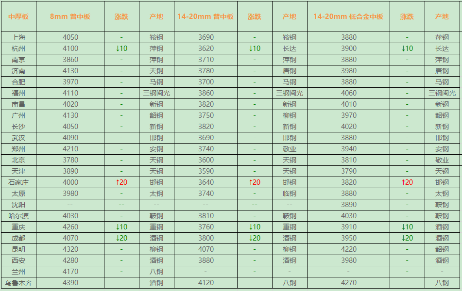 板材:主稳个调今日板材主稳个调,幅度10-20元。从市场了解的情况来看,本周市场利好支撑力度不足,今早盘在期货偏弱震荡影响下,商家操作热情再度转弱,终端需求阶段性补货一般,市场仍存看空心理,商家对后市信心不足,综合以上,预计短期内中厚板或横盘整理。