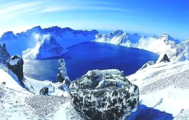 9:20乘登顶车经过72道弯到达【天池】,(去往天池倒站车80自理因天池多变雪大路滑,为安全起见会封山,顾不含倒站车根据当时情况客人自理)远眺朝鲜。