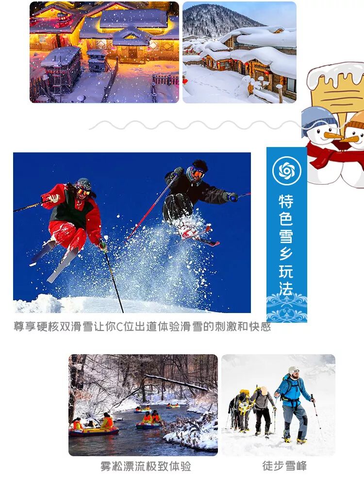 两晚五星级酒店住宿、两次雪地温泉、两次激情滑雪
