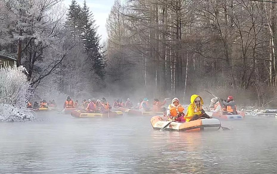 08:30早餐后乘车前往【雾凇】源头漂流赠送,体验冬季不冻河雾凇漂流,沿途观赏美丽的雾凇,这是只有在我们这旮哒才能体验到的。