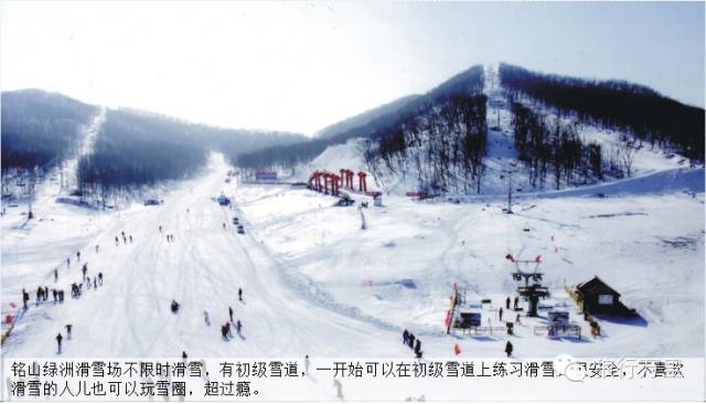 13:00铭山绿洲滑雪场不限时滑雪,有初级滑雪道,所以一开始先在初级雪道练习,滑雪很容易就学会,不喜欢滑雪的可以玩雪圈也很过瘾。