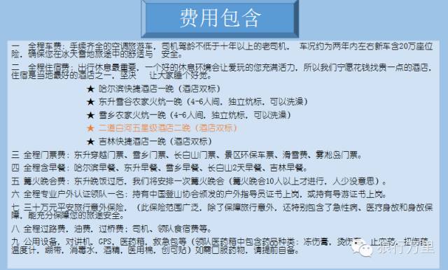 4、东升雪乡的行:东升、雪乡属于偏远林区,物资匮乏是不可避免的,再加上寒冷冬季,穿越雪乡耗费体力较大,所以我们鼓励亲们自备些零食,以便穿越途中补充体力、能量所需;关于零食,需要提醒的是,我们背着行囊穿越雪山,为了腾出更多的空间,队员们尽可能少带体积庞大,又不能果腹的膨化食品,要带些高热量、高能量的食物哦