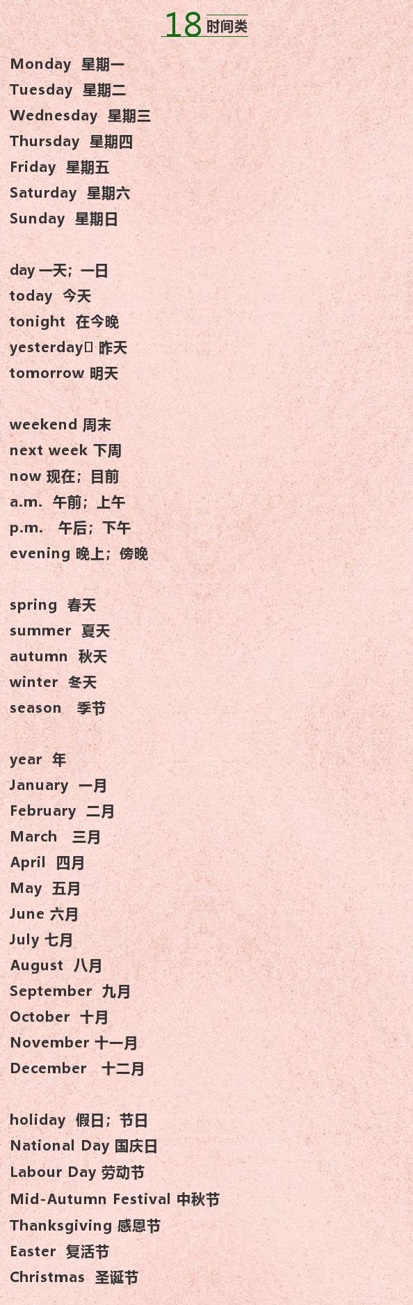 为了便于同学们用这种记忆英语词汇,小编把小学英语的全部词汇划分为学习、体育、课外生活、居家、服饰、场所、自然等 25 大类!原来,我们小学阶段学到的英语词汇就如此丰富,已经涉及生活的方方面面,值得我们好好学习记忆一下!