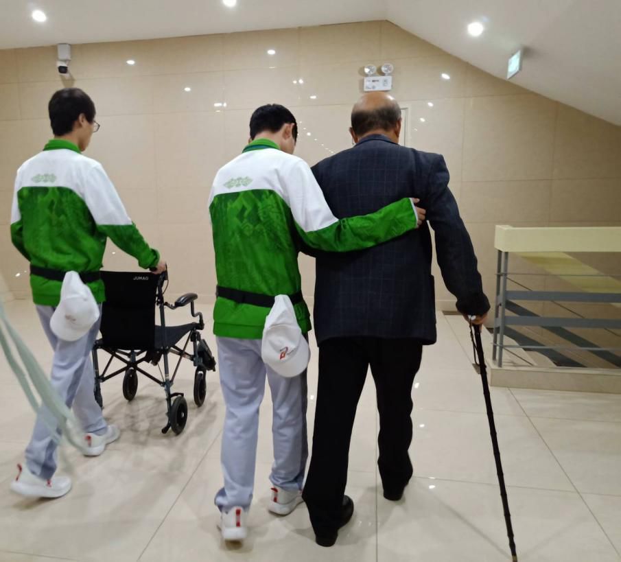 伊朗籍官员Yazdanpanah Masoud因身体不适来医疗点就医,查体结果显示血压偏高且膝关节受损,需要每日监测及定期复诊。针对膝关节受损情况,医护人员进行了对症处理。附属医院医护人员热情的服务,详细的解答,得到了他的高度赞扬,并与医护人员击掌表示感谢。