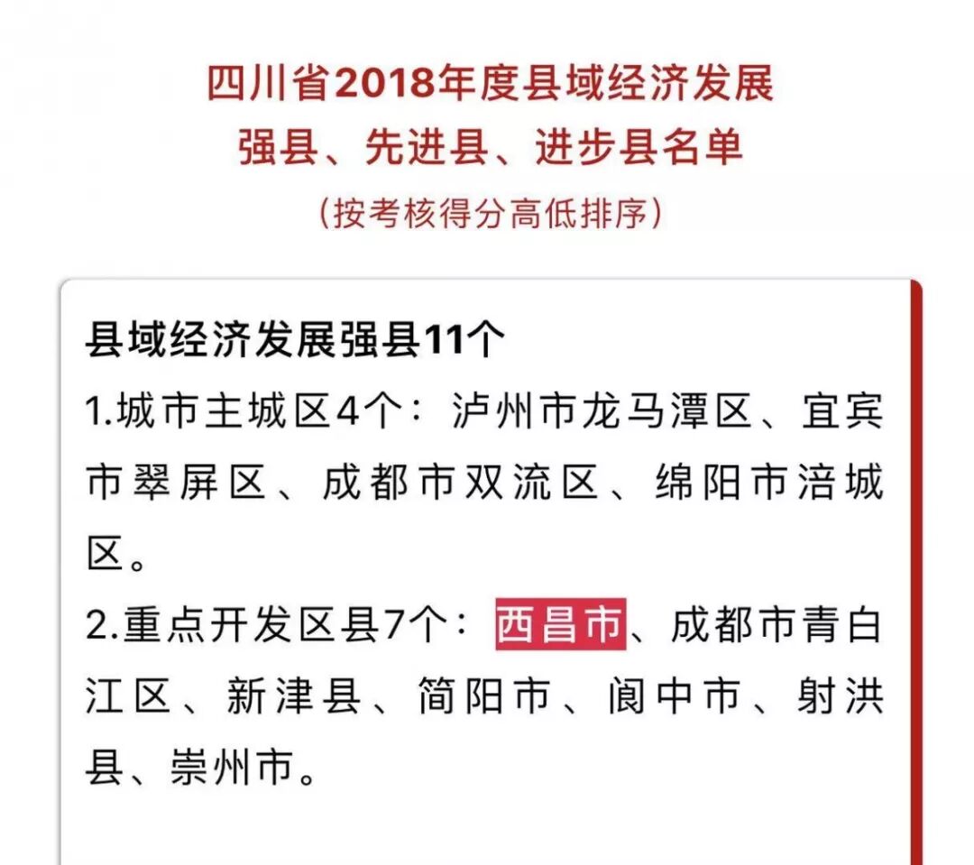 省委十一届三次全会作出实施“一干多支”发展战略,构建“一干多支、五区协同”区域发展新格局的战略部署,并将县域经济作为支撑“一干多支”发展战略的重要基石。西昌作为2018年度全省唯一全国综合实力百强县,提出“1+3”创建(创建省现代农业产业园区和天府旅游名县、县域经济强县、乡村振兴示范县)联动,就是要紧紧抓住时代的“风口”,全面提升县域综合实力和整体竞争力,为推动治蜀兴川再上新台阶贡献力量。