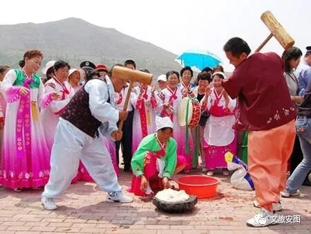 打糕是朝鲜族的传统风味食品之一,也是朝鲜族人民喜爱的节日饮食。它是将蒸熟的糯米放到槽子里用木槌捶打而成,故名“打糕”。朝鲜族传统美食体验馆对打糕的历史、种类、做法做了详尽的介绍,并且为游客提供现场打打糕的体验。