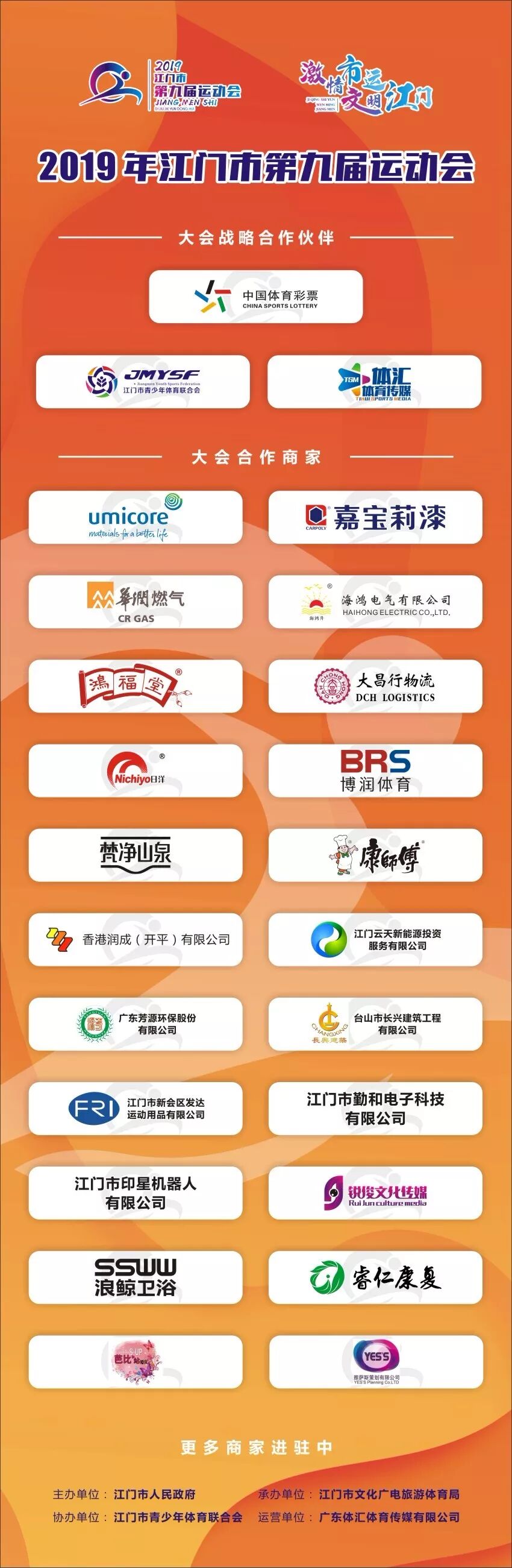 四年一届的市运会,是全市最高规格的大型综合性运动会,本届市运会赛程时间自今年5月9日开始,历时7个月,将于11月8日结束。期间,江门市第九届运动会开幕式、闭幕式分别将于11月1日、8日在江门体育中心体育馆进行。
