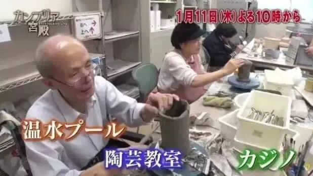 只见一群爷爷奶奶,在养老院里组团打街机、唱K、练水上芭蕾舞、做陶艺、吃自助、泡温泉……潇洒得很!