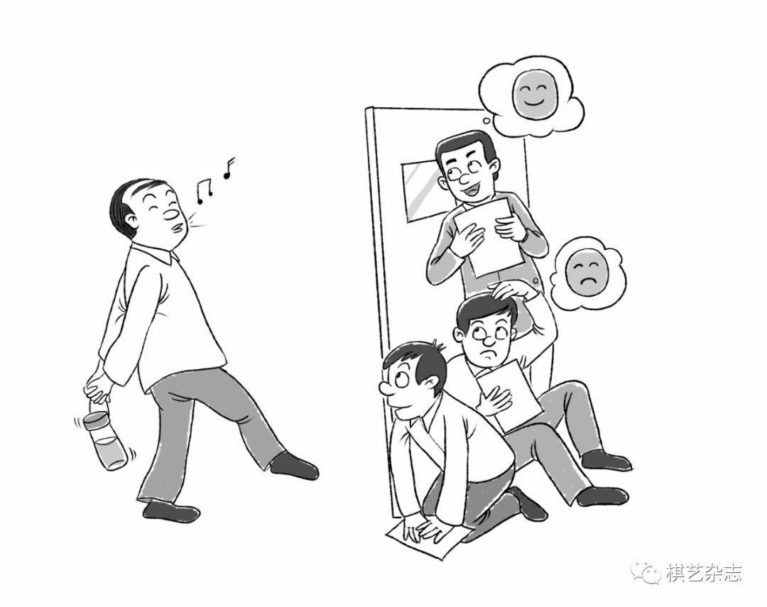 按理说,下棋是娱乐活动,属业余文化范畴,不论输赢,情绪高低,都不能带到工作中去。但人是感情动物,要说完全没有影响,也不太可能。起初,厢体部的人没把陈翰悦处理工作的事和下棋联系到一起,只是觉得到部长那请示工作,有时会受到热情接待,有时感觉陈翰悦冷淡。时间一长,部里的人观察陈部长每天中午下棋回来的表情。如果哼着小曲,面带微笑回来,那是赢棋了,有事请示汇报,一般不会错。如果是抽着烟,闷闷不乐回来,就知道输棋了,不要请示工作,防止吃“闭门羹”。有一天,一位科长觉得工作着急,就在陈部长输棋后汇报工作,老陈头不抬眼不睁的,烟缸里的烟头倒是见多。汇报完了,这位科长尴尬地站在那等着部长的意见。最后,陈翰悦说:“等一等再说吧!”陈翰悦虽然对输棋后下属来汇报工作心里不高兴,但也是不能拿到桌面来说的。于是,在部里月度会上,借着话题发挥了一下:“我们有的同志办事不动脑筋,一点也不理解领导的心情。”大家自然是心有灵犀一点通。从此,厢体部的工作“秩序”果然是好多了。这正是:老陈直率热心肠,喜怒哀乐不隐藏。爱棋爱到骨髓里,三十六计局局讲。声东击西手牵羊,外带杜丘金炳昶。赢棋工作提效率,输了定然心不畅。领导心情怎么样,今日胜负写脸上。(待 续)