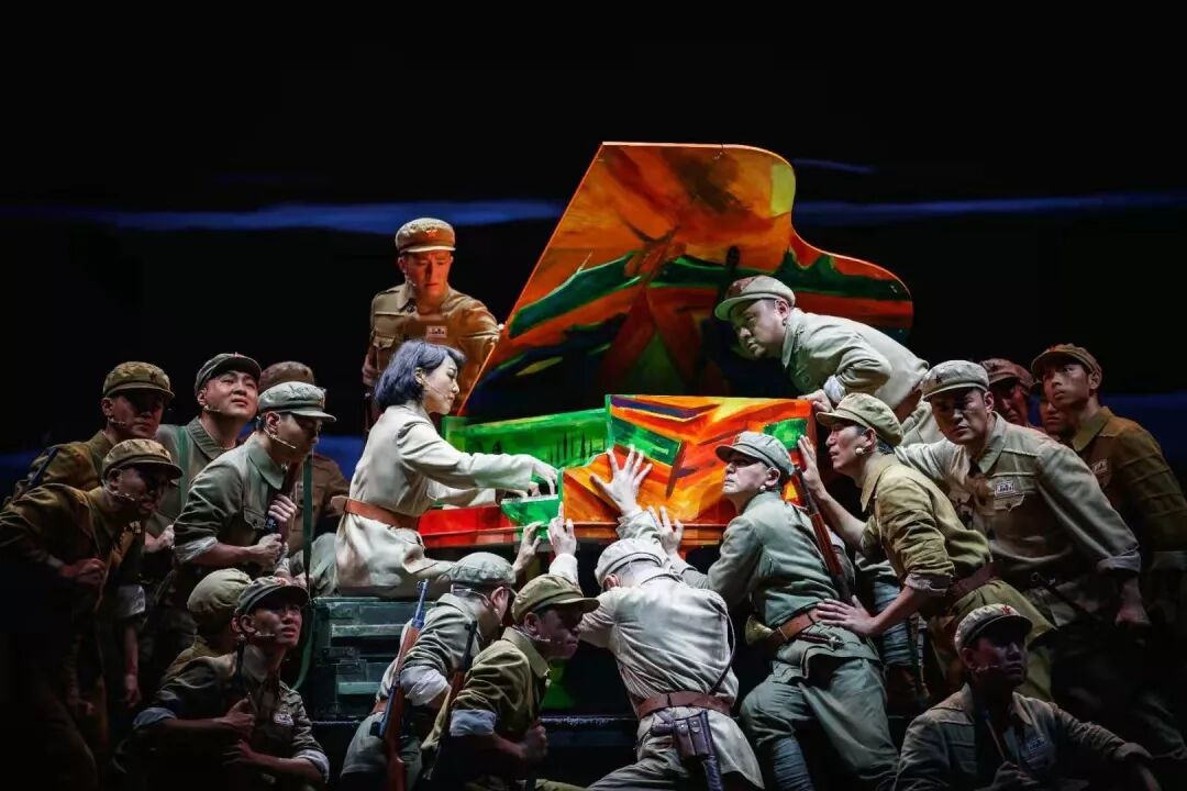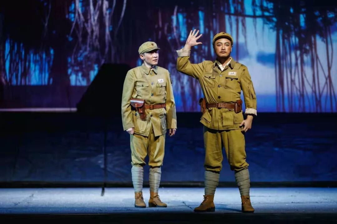 《鼓浪如歌》给出的命题深刻而悠远,而在进行戏剧展开的时候,则充满了诗情画意。创作者抓住了鼓浪屿音乐之岛的特征,一架钢琴,不仅是一个舞台道具,不仅是贯穿全剧的有形线索,更是一个有声的“角色”,在不断变化推进的琴声中,奏响了一曲“生命的挽歌和赞歌”。解放鼓浪屿是一次非常重大的军事行动,如此宏大的事件,要想通过音乐舞台艺术来展现,就必须要具象到某一个团队和人物身上。本剧的戏剧故事落脚于当年驻扎东南沿海的解放军某团,高政委、王团长是某团的核心领导人,而叶海音则是我党潜伏在鼓浪屿的地下工作者,大战在即,叶海音被派回到部队配合作战……从全剧的戏剧结构铺排来看,虽然焦点提出的比较晚,但是一旦亮出之后,随后的戏剧发展就紧紧围绕此焦点,戏剧的推进更加迅速,整体结构也更加紧凑,让这部剧的后半段更加富有观剧的紧张感和吸引力。本剧的音乐创作富有音乐剧的特征,旋律优美动听,节奏感、律动感都很强,对于福建当地民族民间音乐的运用也都恰到好处。很多唱段和音乐都有比较鲜明的容易记忆的特征,今后若能多多演出的话,会具有传唱的可能性。