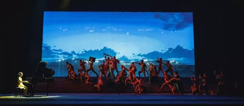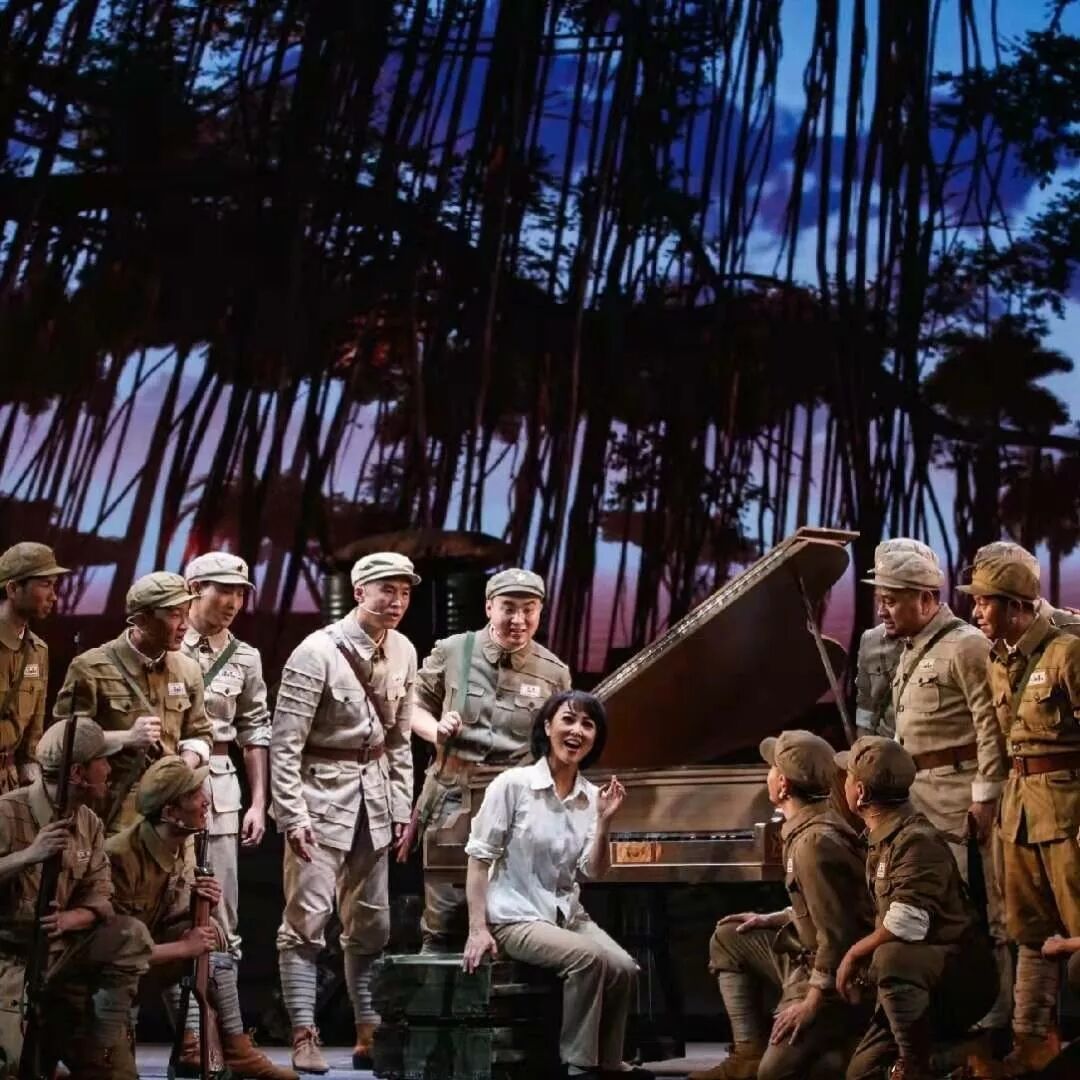 期待首演之后,主创团队能够对此进一步梳理完善。从二度创作来说,舞台整体呈现流畅,舞美虚实结合,场段之间衔接、切换景都很自然、迅速。钢琴道具的运用尤其出彩,将这部剧的核心主题凸显出来。厦门歌舞团近年来做了不少优秀的音乐话剧作品,很多演员即便没有接受过专业的声乐训练,但是在戏中不断实践锻炼,也练就了他们比较出色的综合表现能力。这部剧中,演员们既要唱、又要演,有时还要舞,难度不低,但是完成度都不错。舞台上全部演员大概不到三十人,虽然人员极其有限,但是通过导演的巧妙调度,让很多场面看起来宏大而震撼。特别是几个反映战斗、渡海的场面,无论是表演还是气势都给人留下了非常深刻的印象。应该说,《鼓浪如歌》这部音乐剧初一亮相就显示出不错的成色,继续打磨,作为向共和国70周年的献礼之作,定会在厦门歌舞剧院的艺术创作历程中留下厚重的一笔。