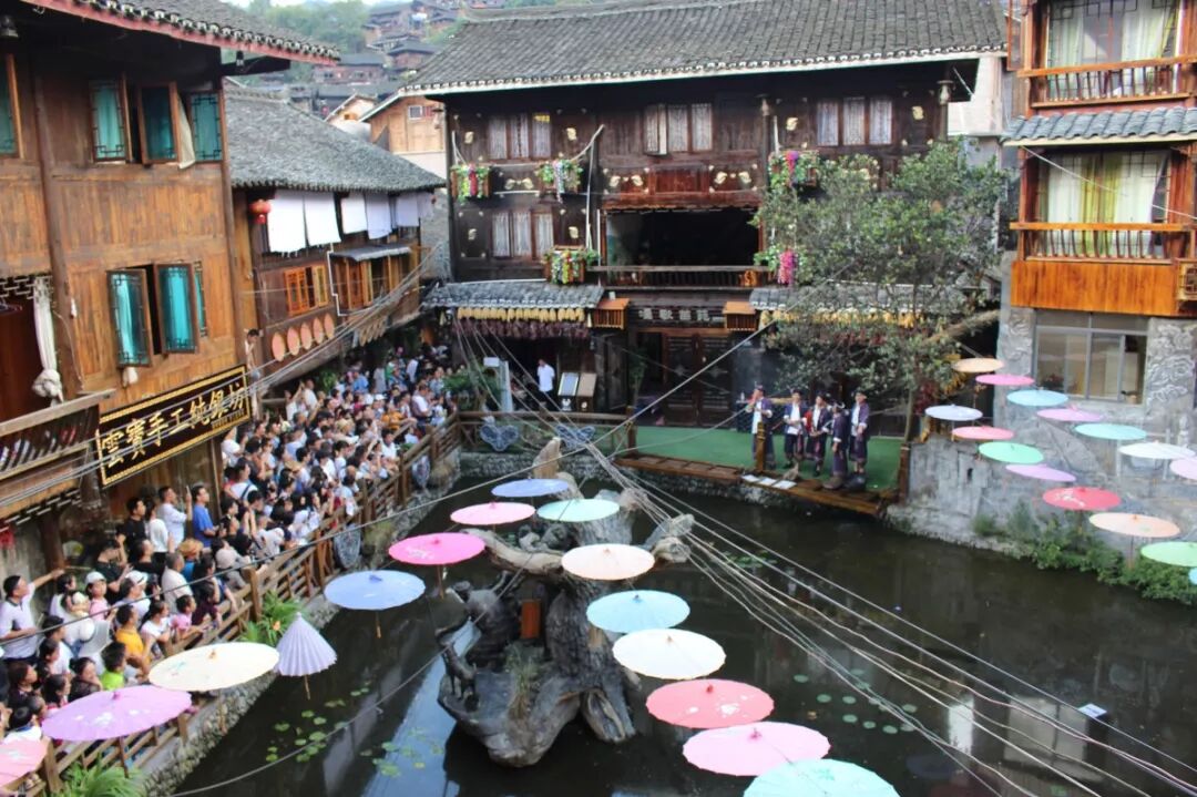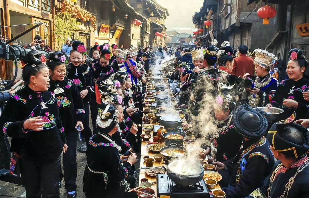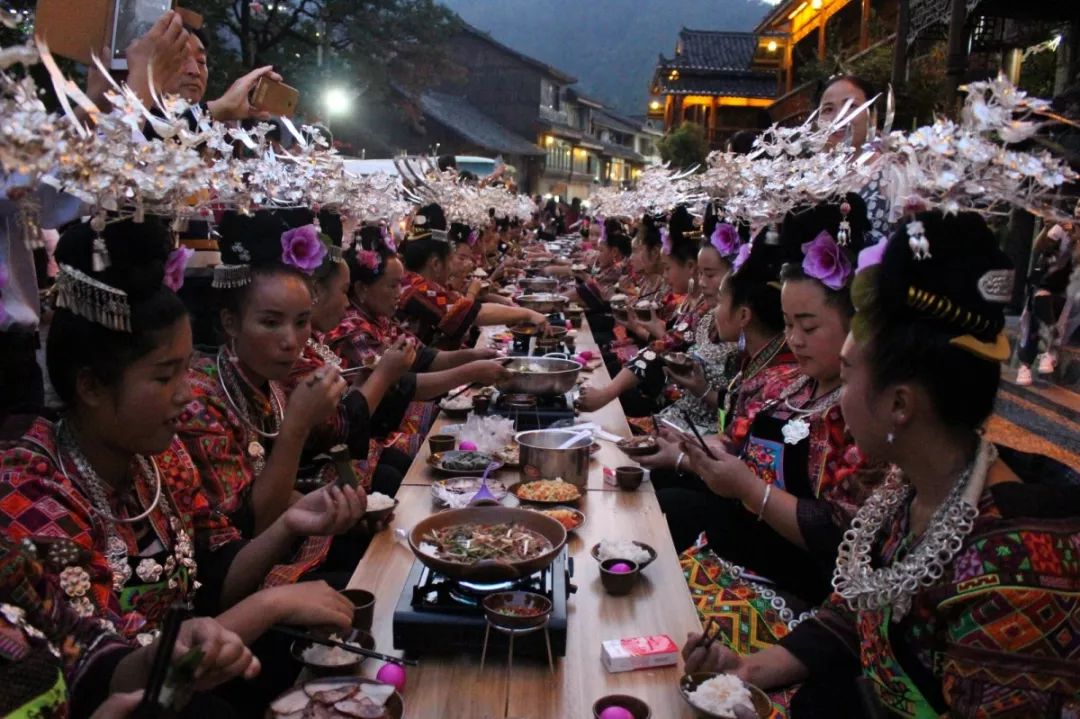 来到西江千户苗寨,当然不能错过品尝独具特色的苗寨“长桌宴”。特色酸汤鱼,苗家鼓藏肉,农家腊肉香肠,还有各种农户家的绿色蔬菜小炒。最美味的食物配,上苗家姑娘的敬酒歌,配上悠扬的芦笙曲、配上姑娘们碗里醇香的米酒,这才真真的感受到苗族平日的生活。