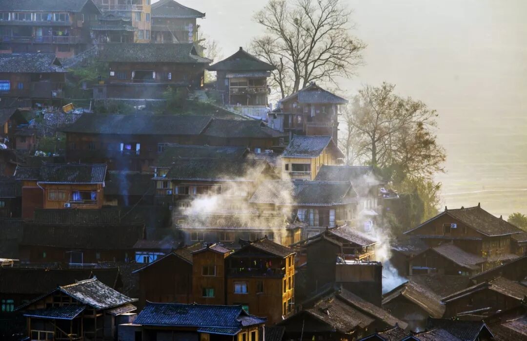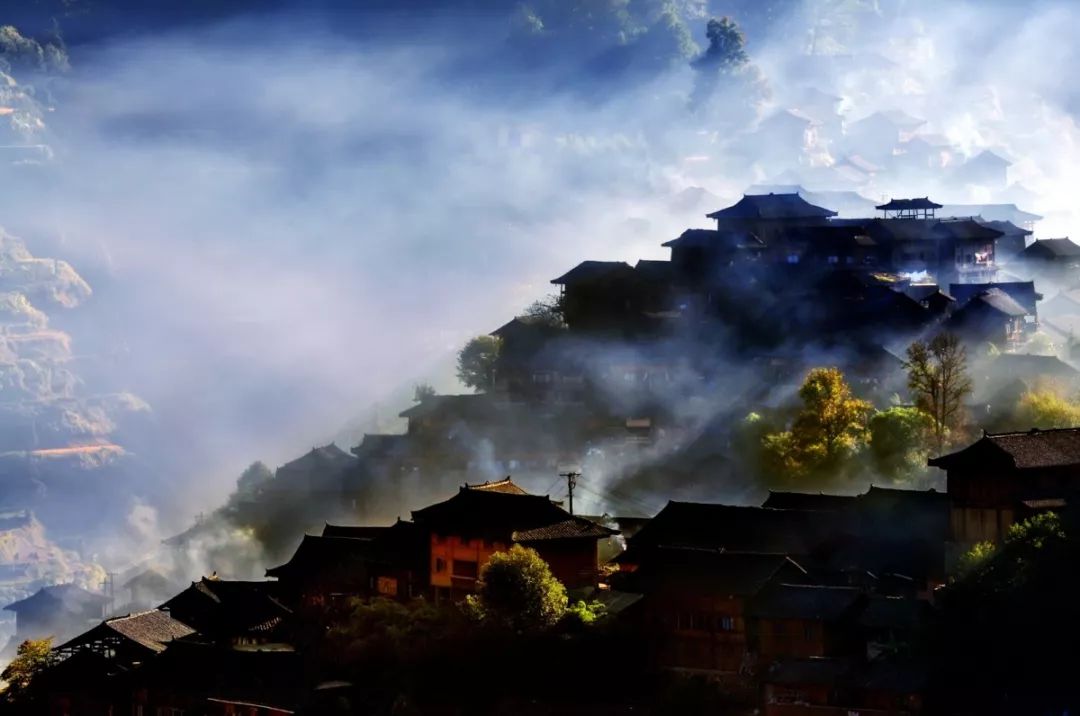 清晨,打开窗户就是炊烟缭绕,入夜,苗寨暮色千灯。这里是西江千户苗寨。