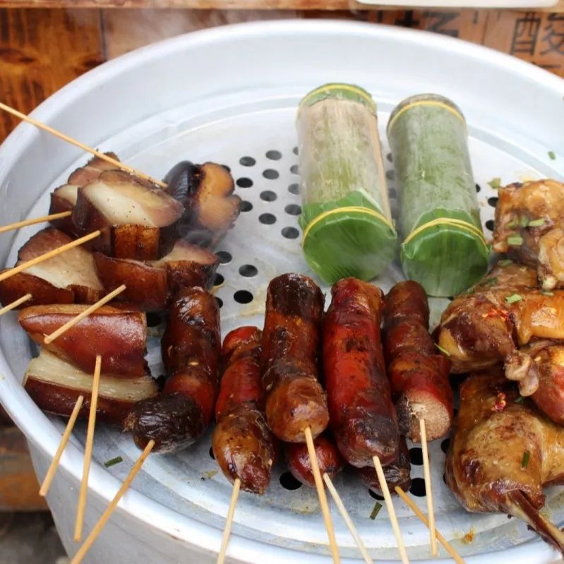 苗家三宝就是腊肉,腊肠,熏豆腐。熏好的腊肉,腊肠表里一致,蒸熟切成片,透明发亮,色泽鲜艳,黄里透红,吃起来味道醇香,风味独特,营养丰富。