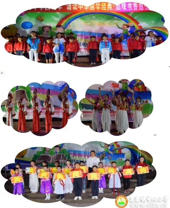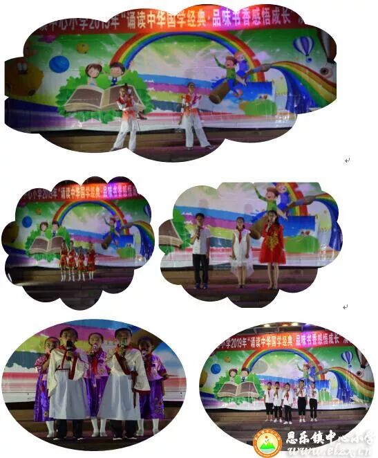 国学经典有着灿烂的篇章和飞扬的文采,绽放出中国文化独特的艺术魅力和韵味。开展国学经典诵读活动,对孩子的作用和影响是巨大的。国学经典诵读,有利于培养孩子高尚的道德情操;国学经典诵读,能大大提高孩子的文化素养。为了弘扬民族文化,提高师生阅读理解国学经典的能力,我校全体师生经过一个月的精心筹备,于10月16日下午,在恩乐镇中心小学校园里以班为单位举行了 “诵读中华国学经典.品味书香感悟成长”国学经典诵读比赛活动。