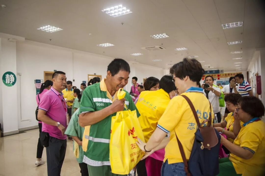 特别鸣谢“友心仁”义工服务队对本公益体检项目的全力支持,并在体检现场准备了面条、洗洁精等慰问礼品,逐一派发给每一位环卫工人;与此同时暨南大学附属顺德医院也为每一位环卫工人送上清凉饮料冲剂,细心体贴的服务丝丝入扣。