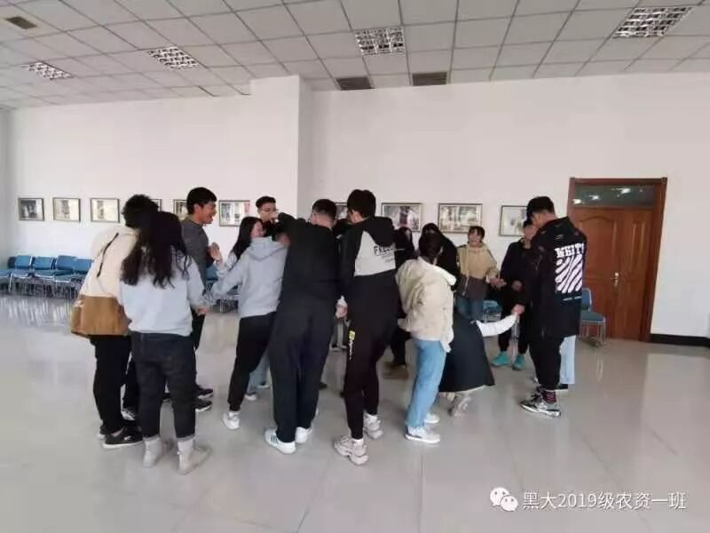 整个活动中气氛都很欢乐,同学们也都积极参与游戏展示自己,减少了彼此间的距离感。“无声排队”、“平地而起”也让大家都意识到集体观念的重要性,虽然由于时间关系最后我们同心结没有解开,但也预示着我们农资二班永远心连心团结在一起!