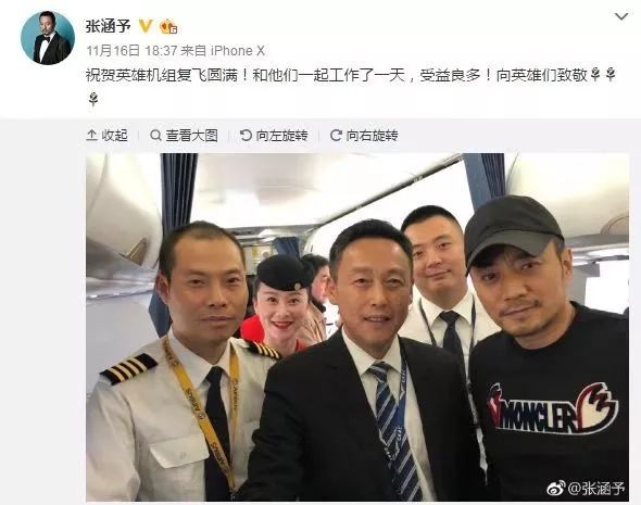 作为演员,我们希望《中国机长》这部电影是献给所有观众的,是献给原型人物英雄机组的,更是献给所有民航人的!”