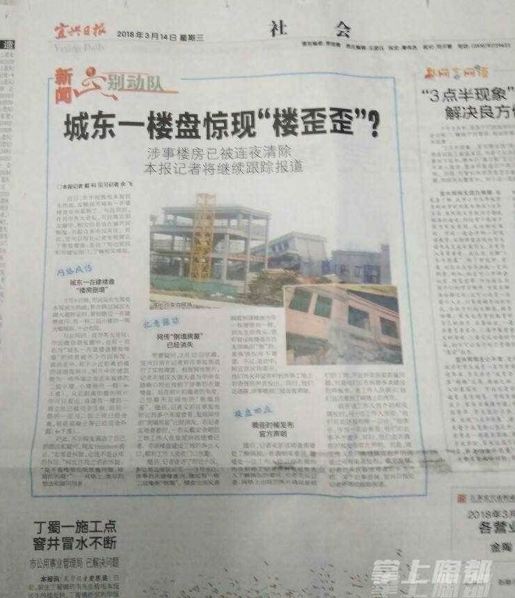 去年三月份,网上曾曝出该楼盘“楼倒了”的消息。