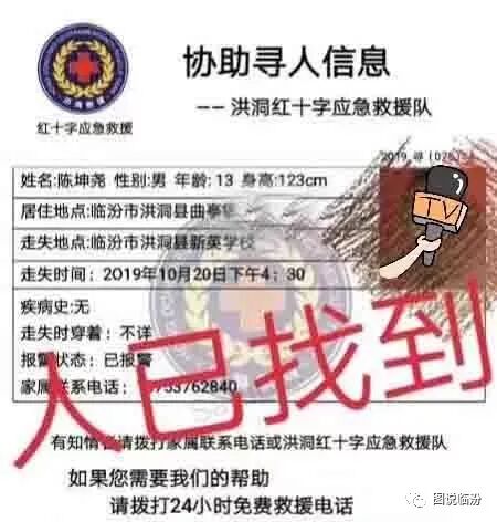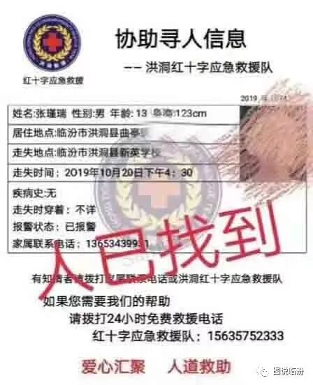 8学生从家到学校的途中集体走失,家属和洪洞红十字应急救援队寻找15个小时终于找到。