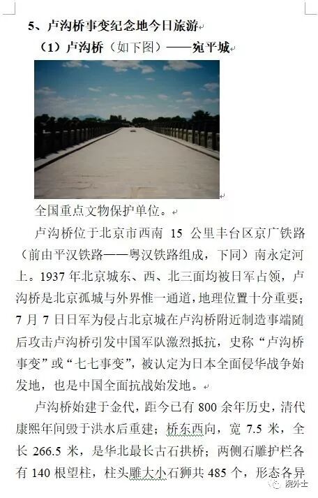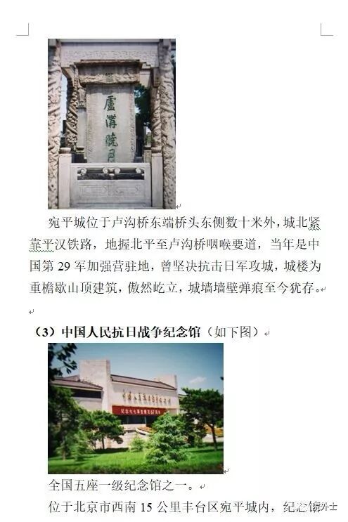 (9)卢沟桥事变暨中国军全面抗战战略防御阶段历史纪念地旅游