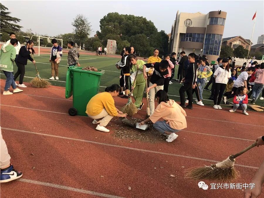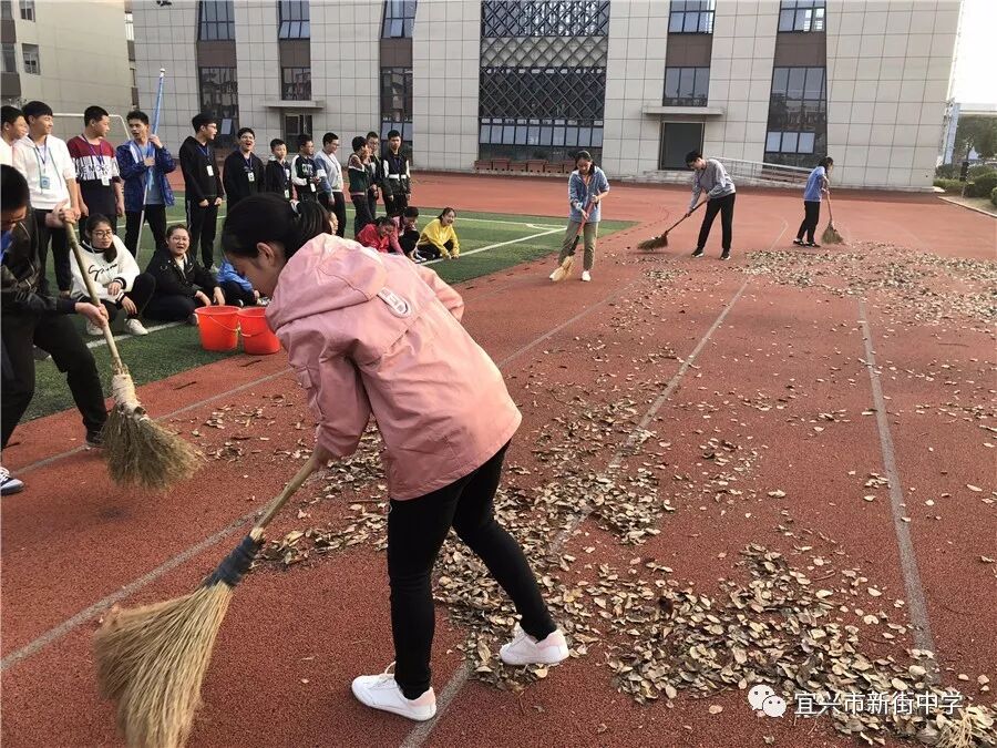 10月24日下午,新街中学操场上人声鼎沸,欢呼声、加油声此起彼伏,一场别开生面的“打扫卫生比赛”正在如火如荼的进行。