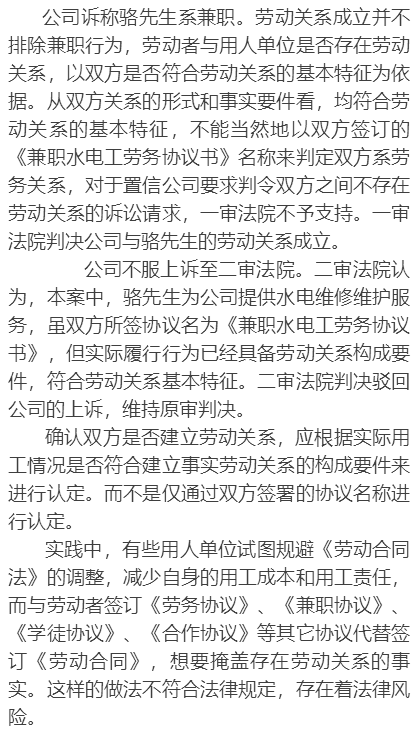 签订了《兼职劳务协议书》,就不是劳动关系吗?