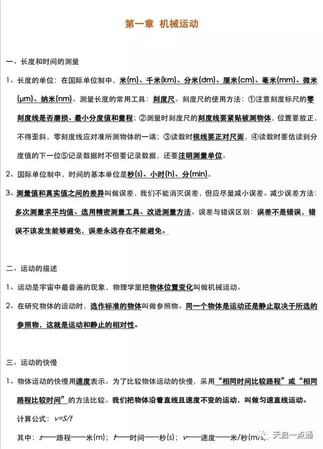 “天启一点通”整理了八年级物理的重点内容,大家可以对照自己的笔记来进行学习和复习哦!