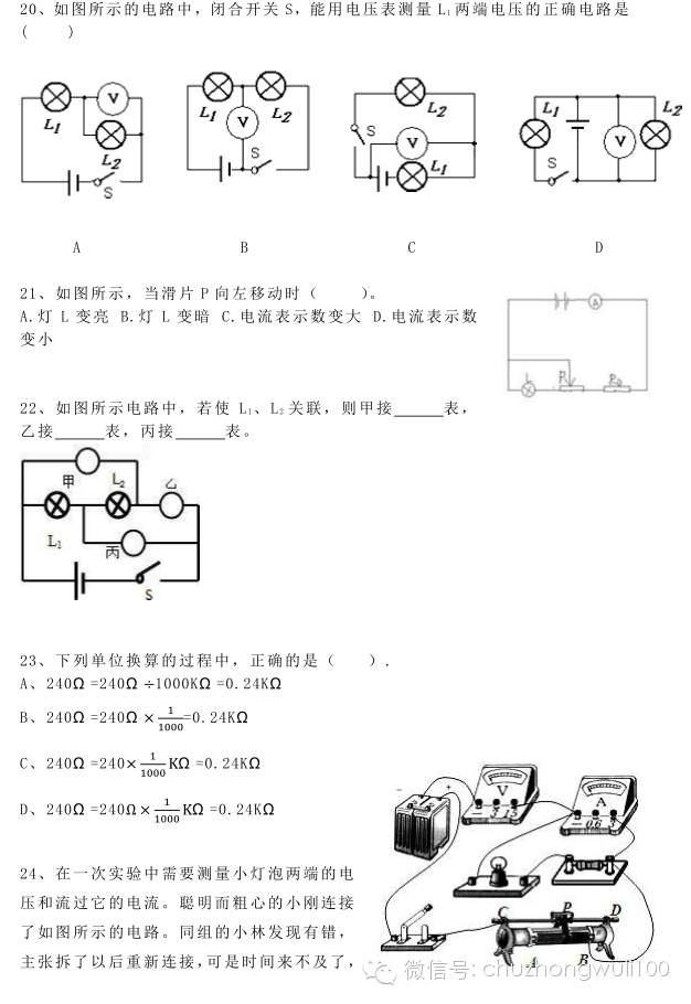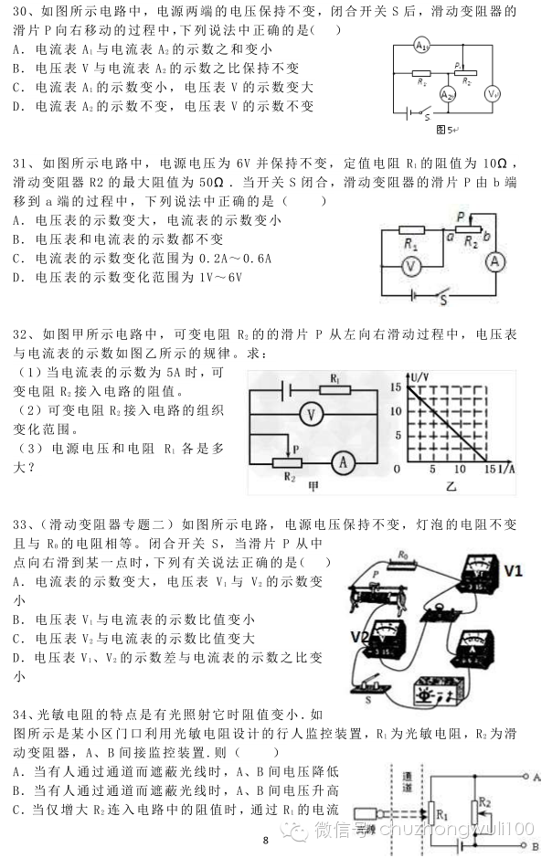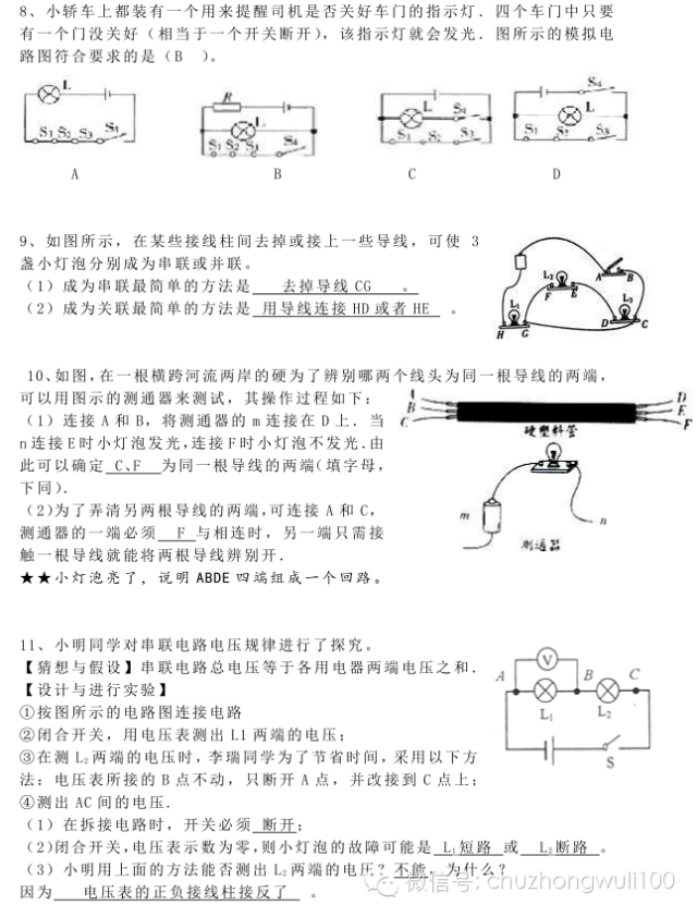 初中物理电学错题本整理,史上最全 ,拿走不谢!