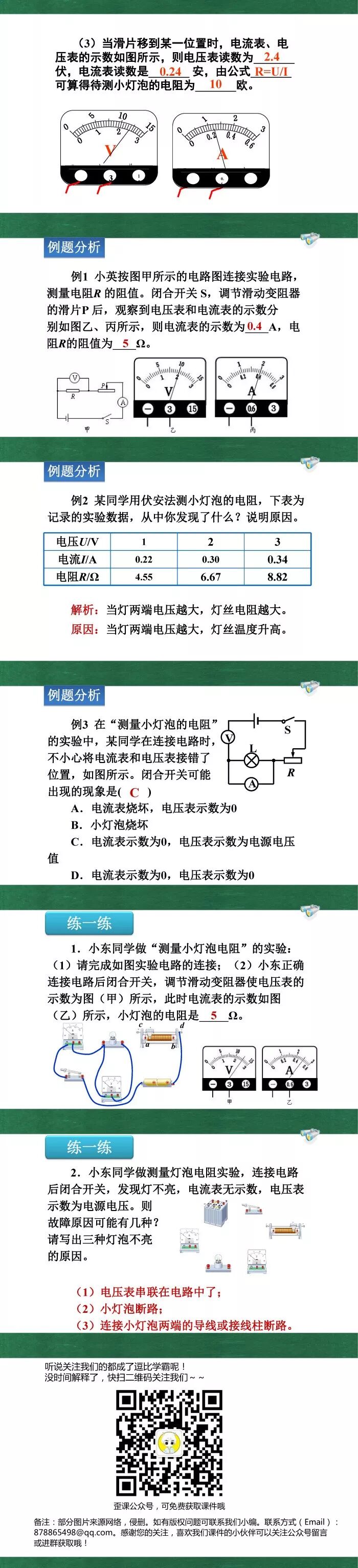 初中物理教学歪课件:17.3电阻的测量(人教版九年级全册)