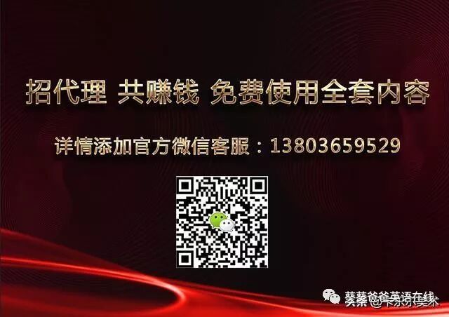 关注“安安爸爸在线英语”公众号获取更多英语资料,在线成人,青少儿英语外教一对一课程免费领取 1)翻转式课堂设计,让你大胆说英语:告别传统式课程,真正实现以学员输出为目的。让你"会表达"、"能表达"、"敢表达"! 2)全方位的课程设计,真正学会用英语交流,真人外教一对一,小班课等课程设制,模拟真实场景,打造趣味式英语学习环境! 先进学习追踪系统,保障学习成效,采用先进的多媒体互动课件,追踪学生学习情况,全面保障学习的效率。