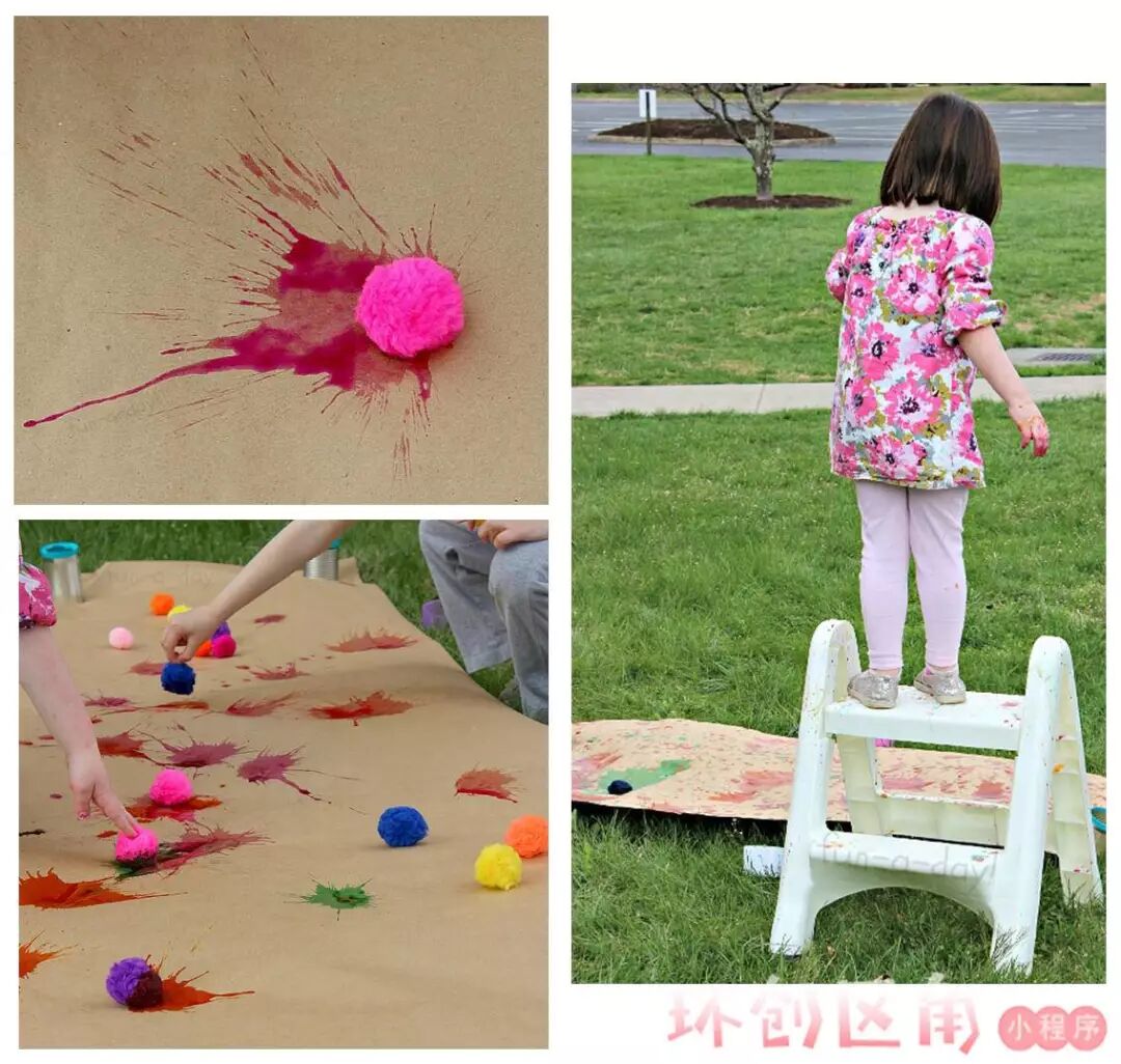 把蘸了颜料的毛球往纸上一扔,奇妙的图案就跳出来了。还非常适合集体作画,孩子们肯定喜欢。