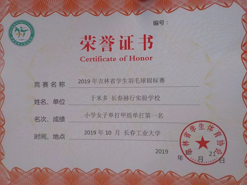 赫行喜报激情金秋 谁“羽”争锋——长春赫行实验学校在“2019年吉林省学生羽毛球锦标赛”中喜获佳绩