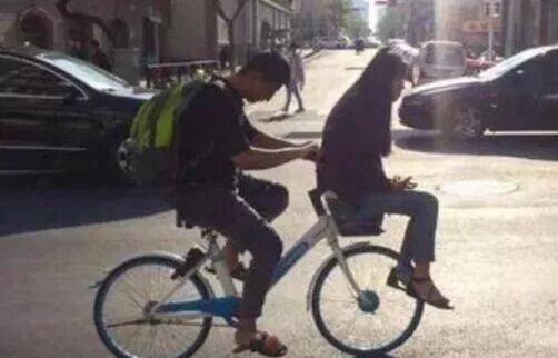 用车筐装女朋友秀恩爱的更让人不解
