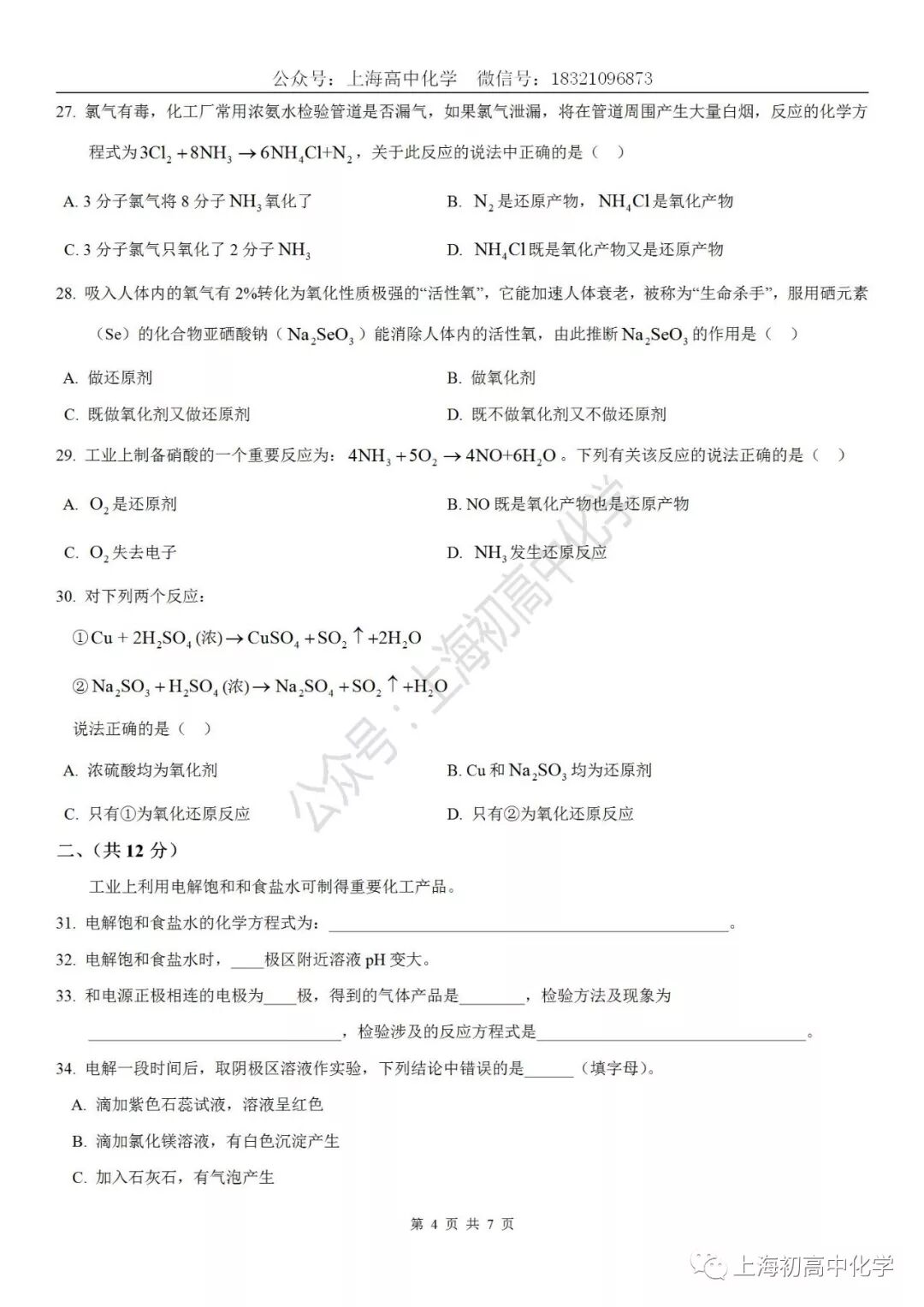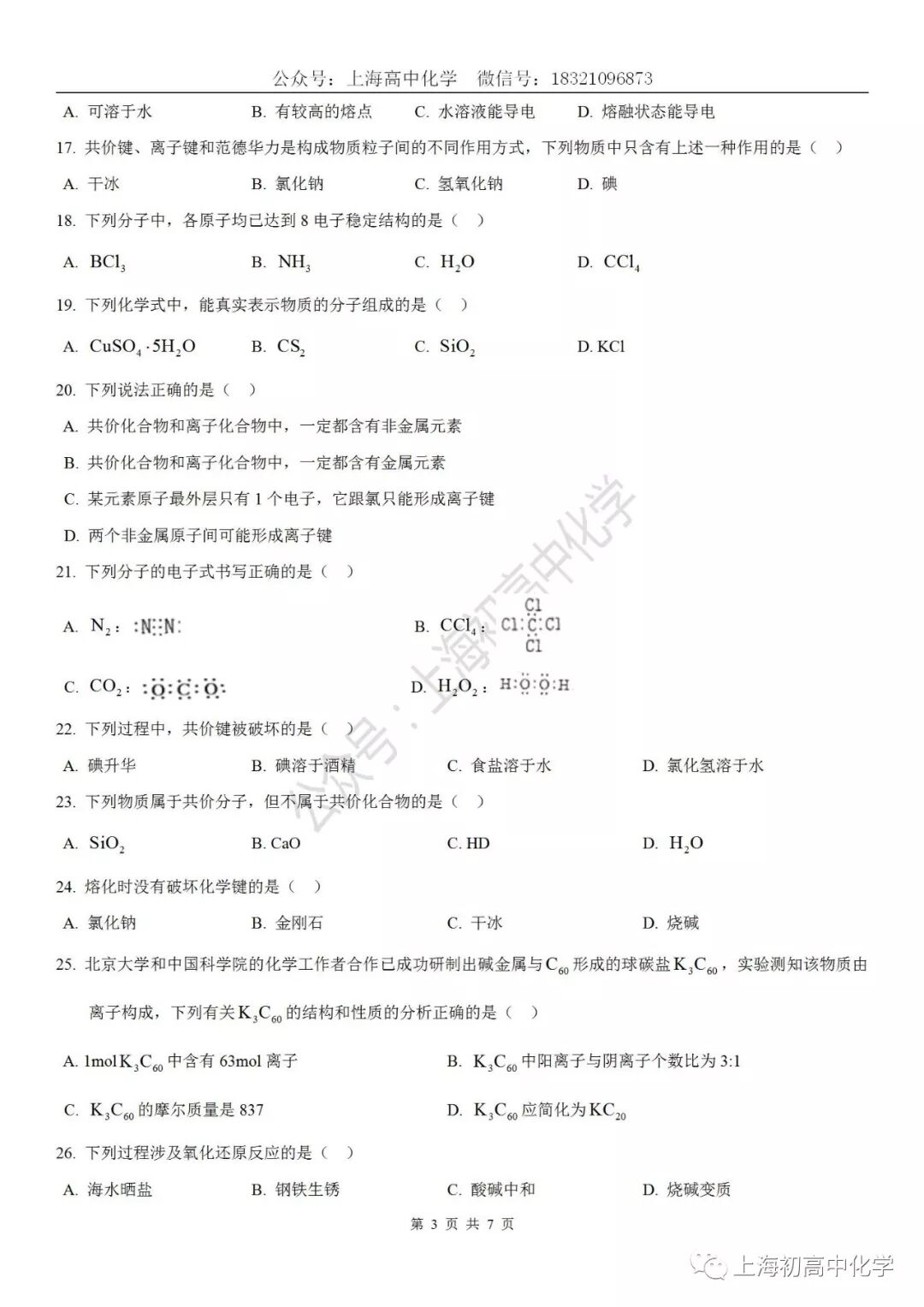 该试卷仅供交流学习,答案仅供参考,若有疑问,欢迎大家指正,谢谢