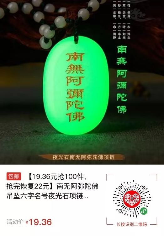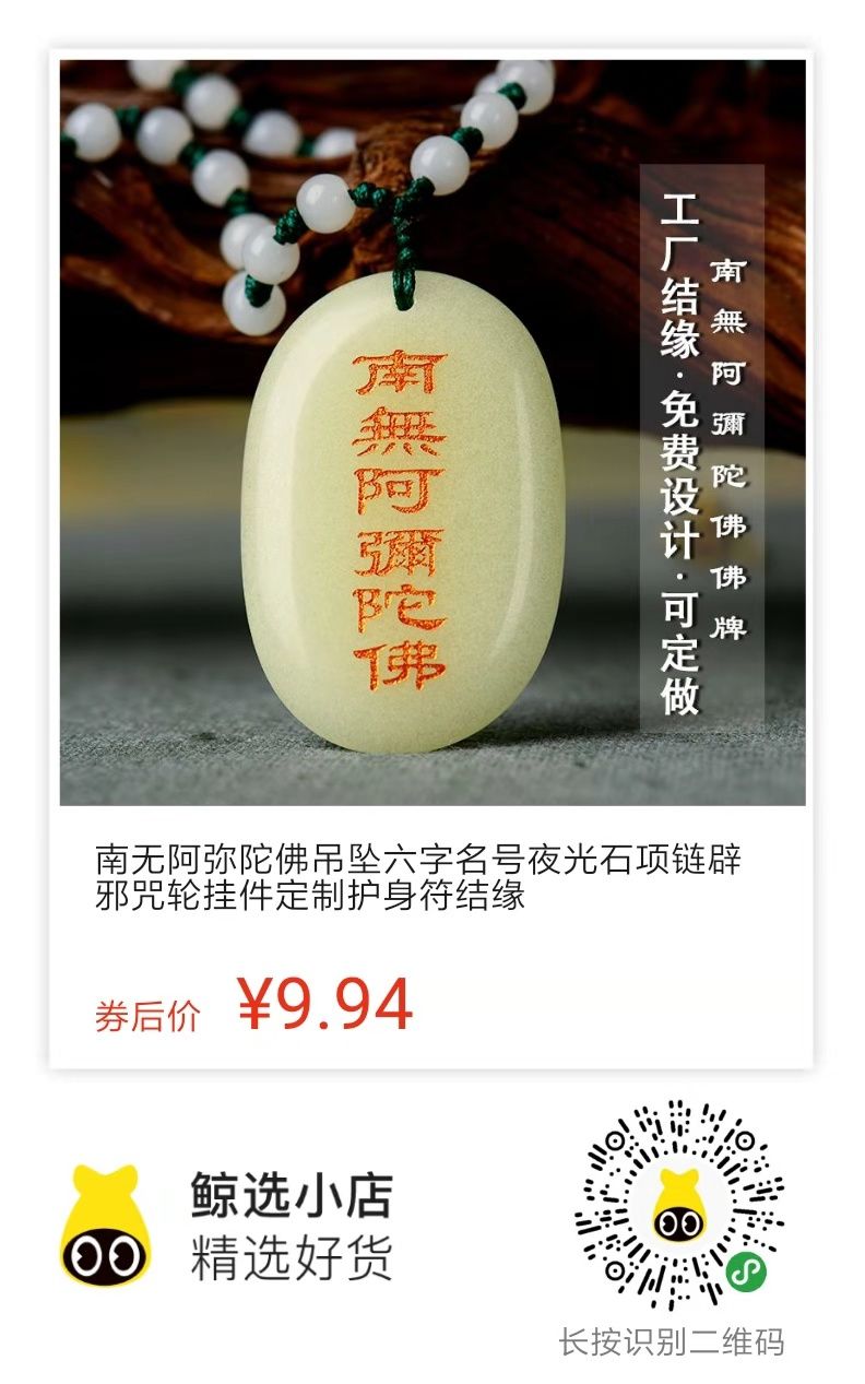 ?【19.36元抢100件,抢完恢复22元】南无阿弥陀佛吊坠六字名号夜光石项链辟邪咒轮挂件定制护身符结缘