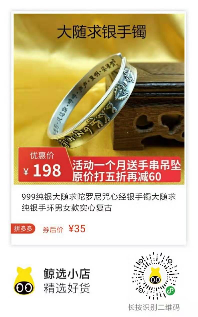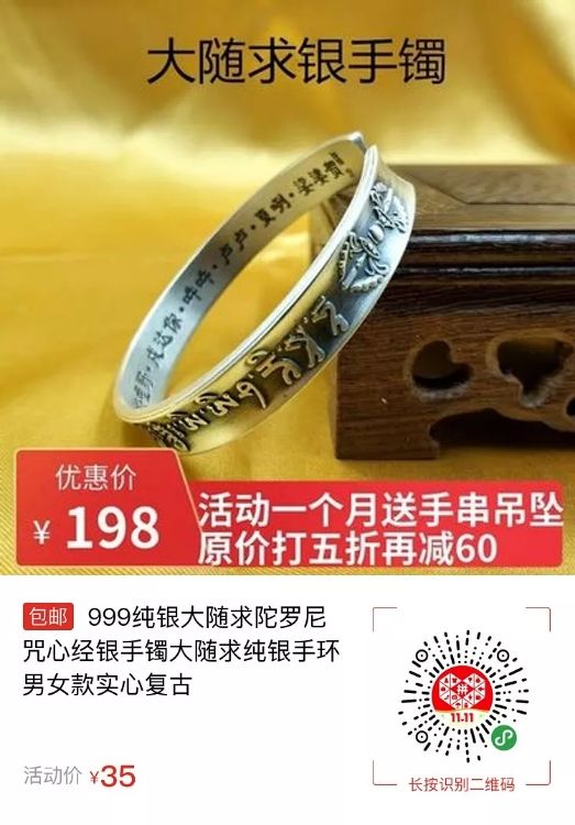 ? 999纯银大随求陀罗尼咒心经银手镯大随求纯银手环男女款实心复古