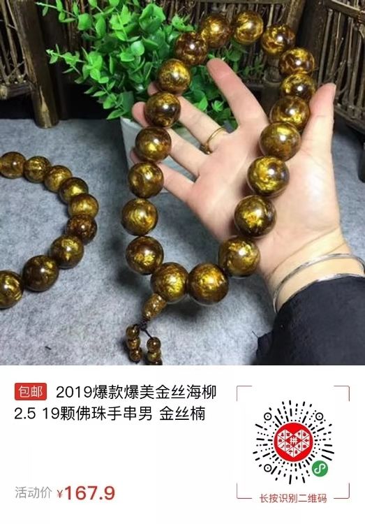 ? 2019爆款爆美 金丝海柳2.5 19颗佛珠手串男 金丝楠