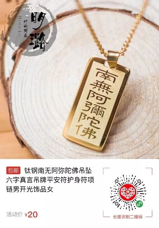 ? 钛钢 南无阿弥陀佛吊坠 六字真言 吊牌 平安符 护身符 项链 开光饰品