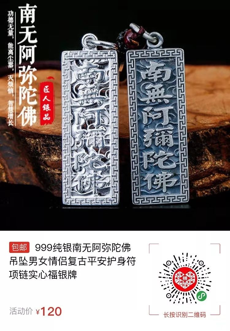 ? 999纯银 南无阿弥陀佛 吊坠 男女情侣 复古 平安护身符 项链 实心 福银牌
