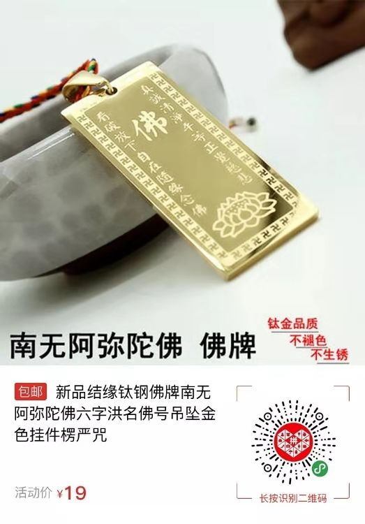? 新品结缘 钛钢 佛牌 南无阿弥陀佛 六字洪名 佛号 吊坠 金色 挂件 楞严咒