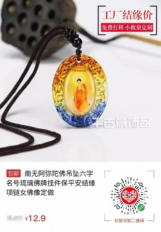 ? 南无阿弥陀佛 吊坠 六字名号 琉璃 佛牌 挂件 保平安 结缘 项链 女佛像定做