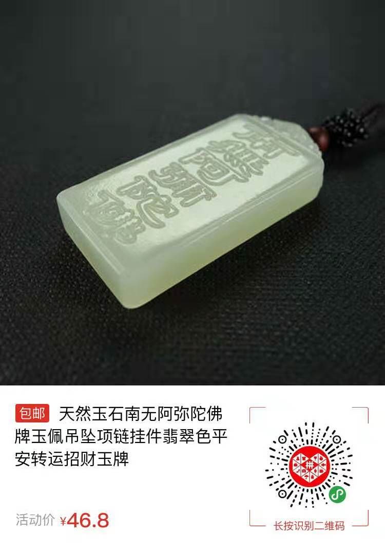? 天然玉石 南无阿弥陀佛牌 玉佩吊坠 项链 挂件 翡翠色 平安转运 招财玉牌