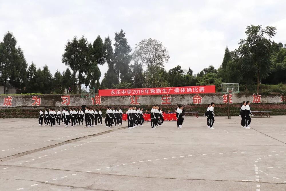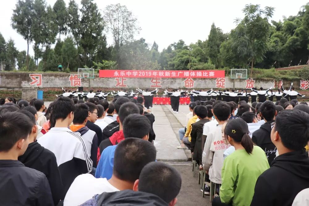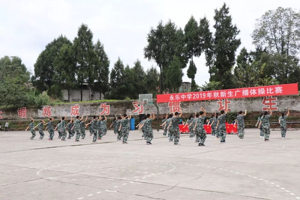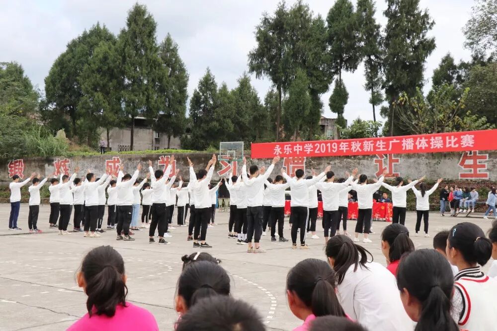 为了进一步丰富校园文化生活,推进我校阳光体育的蓬勃发展,展示学生的风采风貌,10月23日下午,永乐中学在学校运动场举行了2019级初一和高一新生广播体操比赛活动。