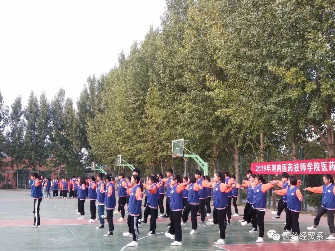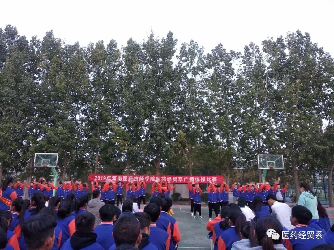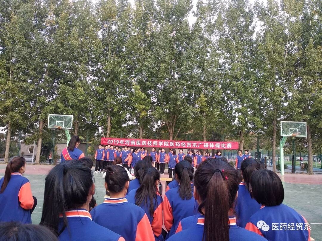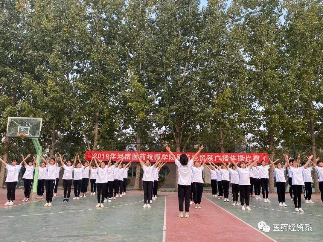 为丰富校园文化生活,提高学生们的身体素质,培养学生集体主义观念以及吃苦耐劳的顽强意志,展现同学们积极进取、奋发向上的精神风貌,河南医药技师学院医药经贸系2019年10月24日下午4点在篮球场举办“高扬青春活力,大展团队风采”为主题的广播体操预选比赛活动。